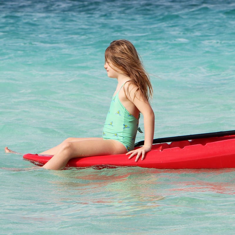 Les maillots une pièce Vendredi pour les petites filles reprennent les codes de la marque : de jolis motifs exclusifs et dessinés à la main, une matière douce et recyclée, une production en Europe (Italie) et petit plus : ils sont anti UV !