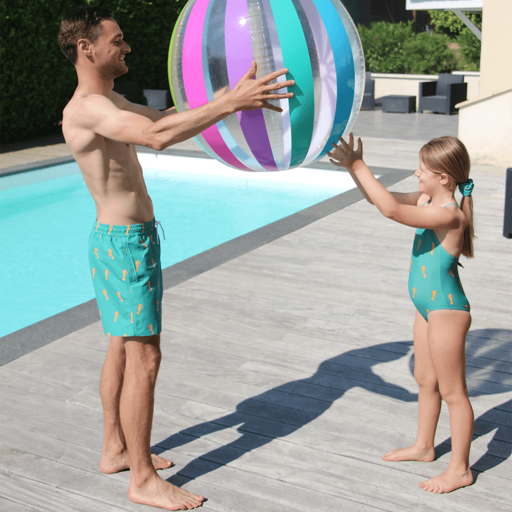 Vous pouvez également assortir papa et fille mais aussi frère et sœur grâce aux imprimés coordonnés ! Vos filles seront tout simplement adorables dans leur maillot Vendredi aux couleurs estivales avec les petits détails des bretelles ajustables croisées et du nœud dans le dos !